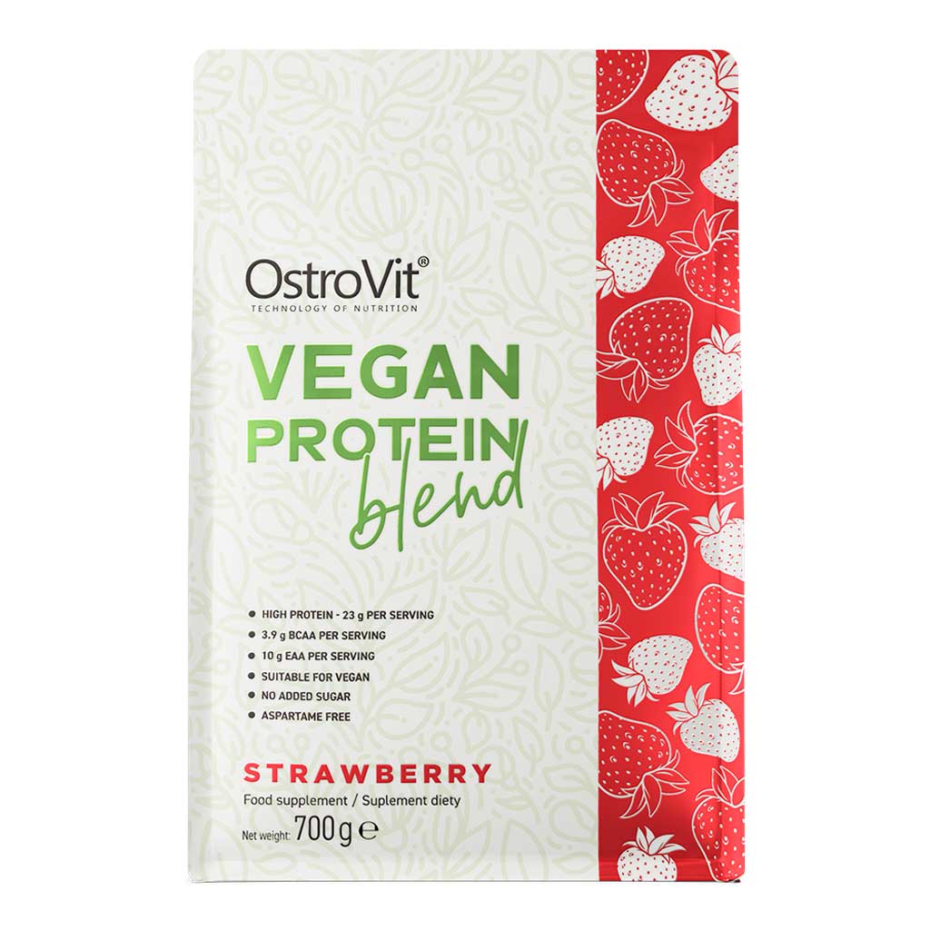 Vegan protein pulver Jordgubb 700 gram är en högkvalitativ blandning av växtbaserade proteiner med en proteinhalt på nästan 80 %. Detta kosttillskott är framtaget speciellt för vegetarianer och veganer. Produkten är ett utmärkt tillskott till den dagliga kosten och passar särskilt bra för personer med en aktiv livsstil och vid ett ökat behov av protein.