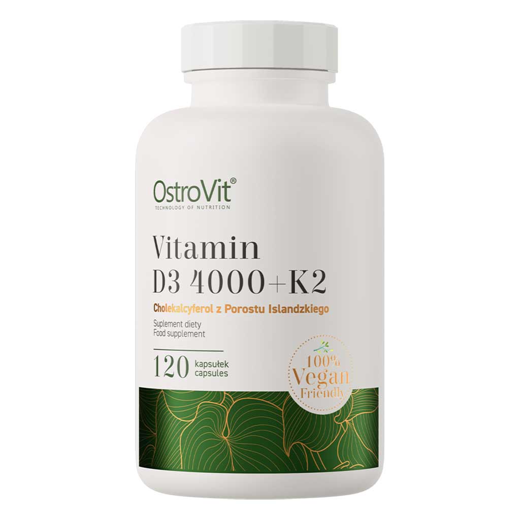 Vitamin-D3 Vegan + K2 (4000ie) 120-kapslar är ett veganskt kosttillskott som innehåller både D-vitamin och K2 från naturliga källor. Vitamin D3 kommer från isländsk lav (kolekalciferol), och vitamin K2 MK-7 utvinns från fermenterad soja.